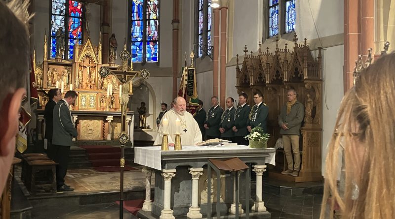 Sonntag, 23.11.25: Zum Ende des Kirchenjahres feiern die beiden Gindericher Schützenbruderschaften das Christkönigsfest. Es begann traditionell mit einem gemeinsamen Gottesdienst, in dem auch der Verstorbenen der Bruderschaften und des Spielmannszuges gedacht wurde.