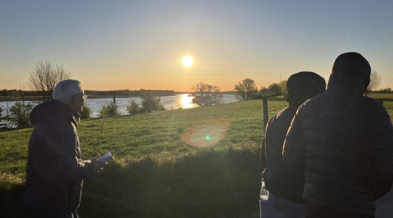 Der Männerbußgang: Nach kurzer Andacht um 6.00 Uhr in der Krypta des Xantener Doms machten wir uns auf den Weg über die Bislicher Insel nach Ginderich. Hinein in die aufgehende Morgensonne.